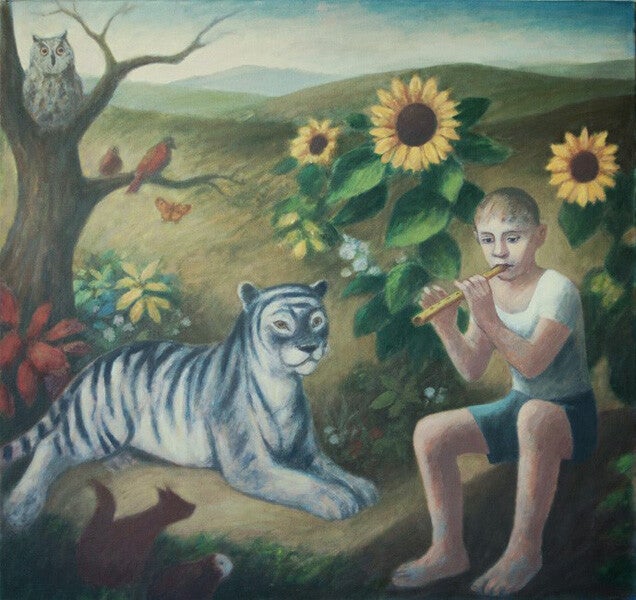 Orpheus met blauwe tijger, 49,4x62 cm o/p 2021
